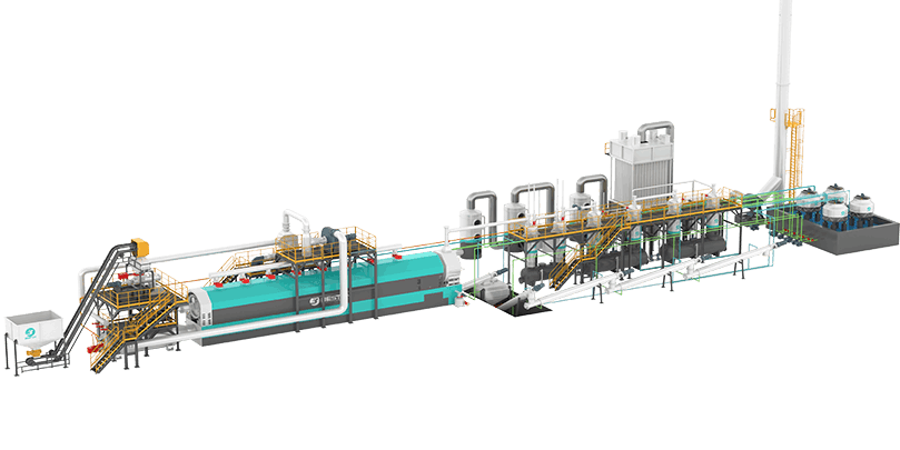 廢舊輪胎、塑料通過熱解產出燃料油、炭黑和廢鋼絲等,提供3-35噸/天處理范圍內的多種規(guī)格設備,有撬裝式、間歇式、全連續(xù)煉油設備等多種工藝可供選擇。